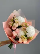 Шикарный букет из гортензии, альстромерии, гвоздики и розы будет всегда отличным подарком для неё.