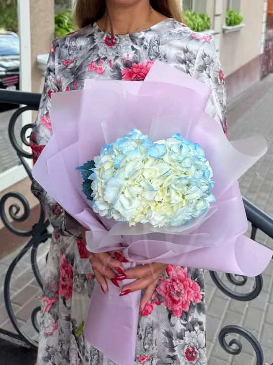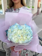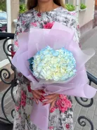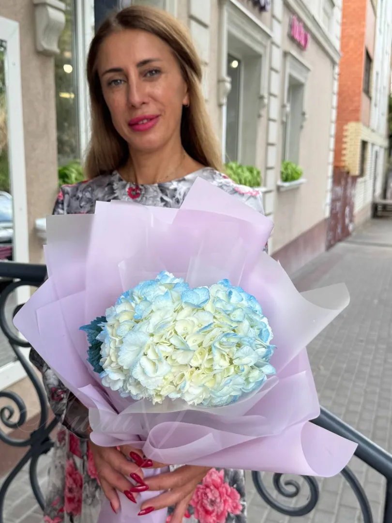 Монобукет букет с нежной голубой гортензией поднимет настроение каждой.