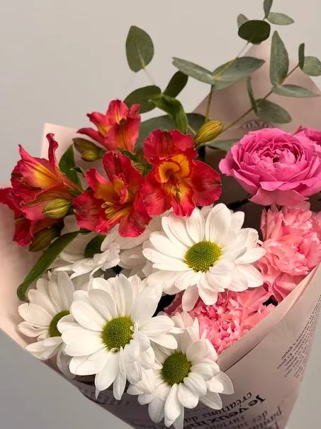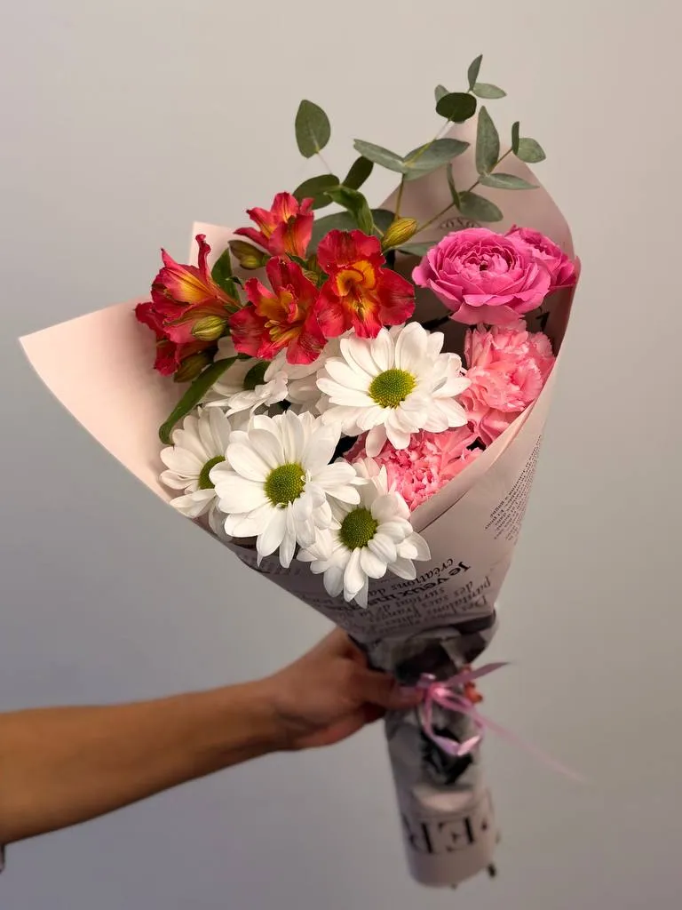 Подарите яркое и элегантное настроение с букетом «Первоклассник», сочетающим в себе изящность альстромерии и романтичность кустовой розы. В основе композиции — гвоздика и кустовая хризантема, создающие объем и насыщенность цвета. Дополняет букет ароматный эвкалипт, который добавляет свежести и природной гармонии. Идеально упакованный, этот букет станет прекрасным подарком по любому поводу.