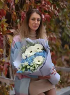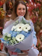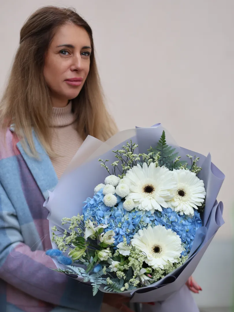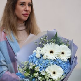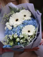 Сказочной сборный букет - изт гортензии, герберы и альстромерии с добавлением различной зелени.