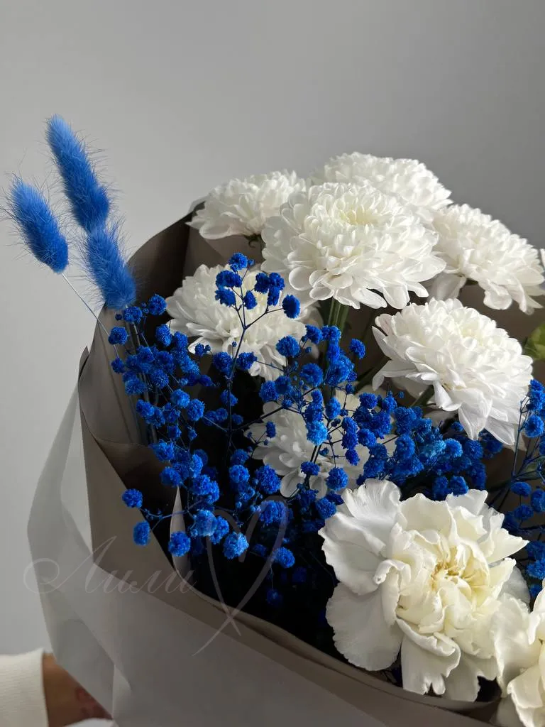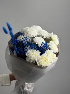 Этот красивый букет включает в себя нежные диантус,гипсофилу и кустовые хризантемы Он упакован в изысканную корейскую бумагу, придавая ему особый шарм и изысканный вид. Подарите этот букет и заставьте сердце вашего близкого забиться сильнее от восторга и восхищения.