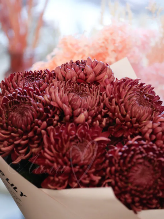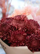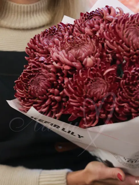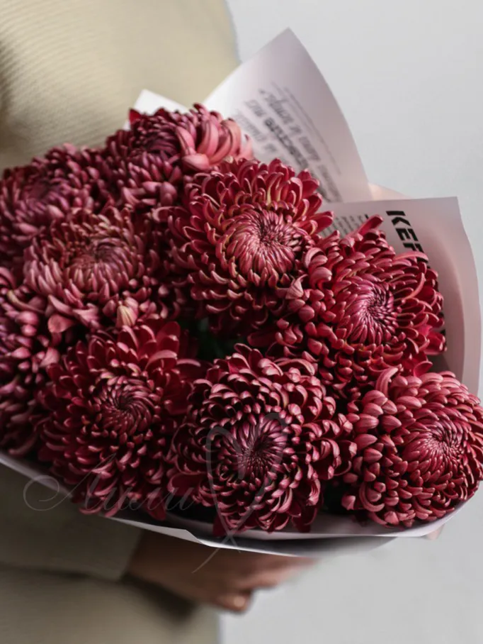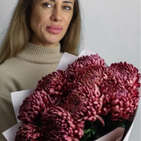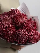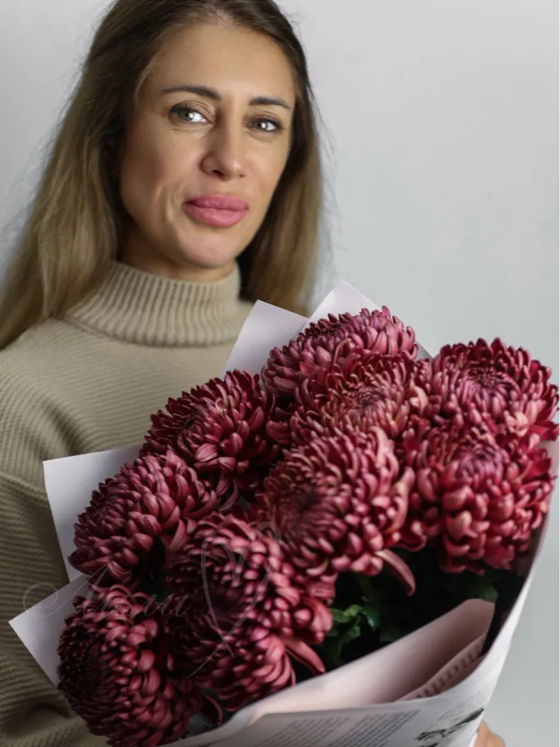 Шикарный и яркий букет из хризантем собран в стильную упаковку, которая подчеркивает их шарм и привлекательность. Этот букет отлично подойдет для подарка близким или для украшения интерьера. Его насыщенные оттенки создают уютную атмосферу и поднимают настроение. Букет «Настроение Бордо» выполнен из свежих и качественных цветов, которые сохранят свою красоту долгое время. Такой букет станет выразительным символом благодарности, любви или просто хорошего настроения. Он отлично подойдет для любого повода и обязательно порадует получателя своей изысканностью.