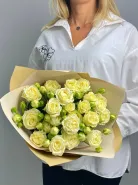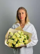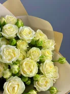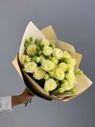 Этот нежный букет состоит из кустовых,пионовидных роз, упакованной в красивую корейскую бумагу. Он передает ощущение утонченности и изысканности, идеально подойдет как прекрасный подарок для особого случая или просто как знак внимания и любви. Чистая и простая красота этого букета наверняка порадует и вдохновит любого получателя.