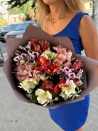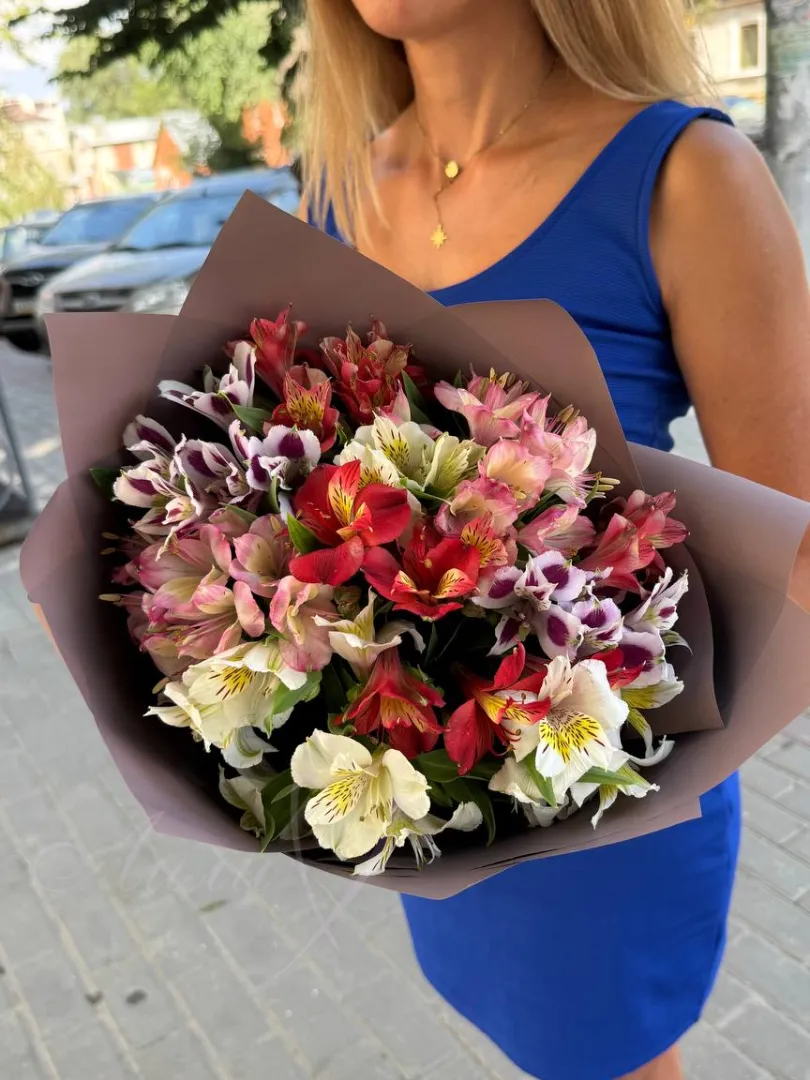 Нежный и изысканный букет из альстромерии, упакованный в корейскую бумагу, станет прекрасным подарком для вашей любимой или близкого друга. Альстромерии символизируют долговечную красоту и процветание, что делает этот букет еще более особенным.