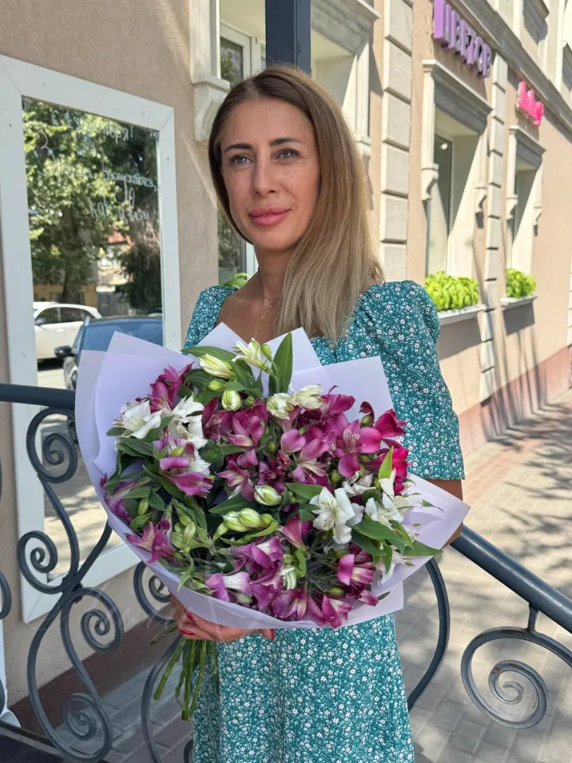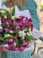 Прекрасный букет альстромерии, упакованный в корейскую бумагу, станет прекрасным подарком для любого случая. Альстромерия символизирует дружбу, верность и долговечность отношений, делая этот букет идеальным подарком для близких и дорогих людей.
