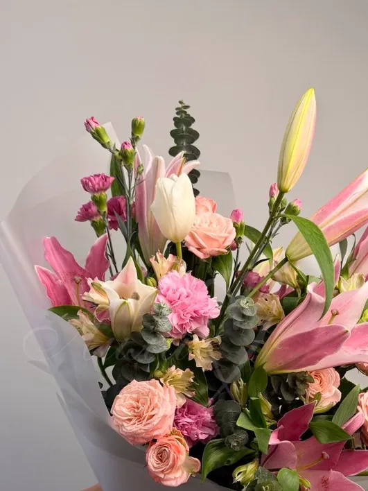 Все филиалыБукет из лилий, тюльпанов и роз «Яркое лето»