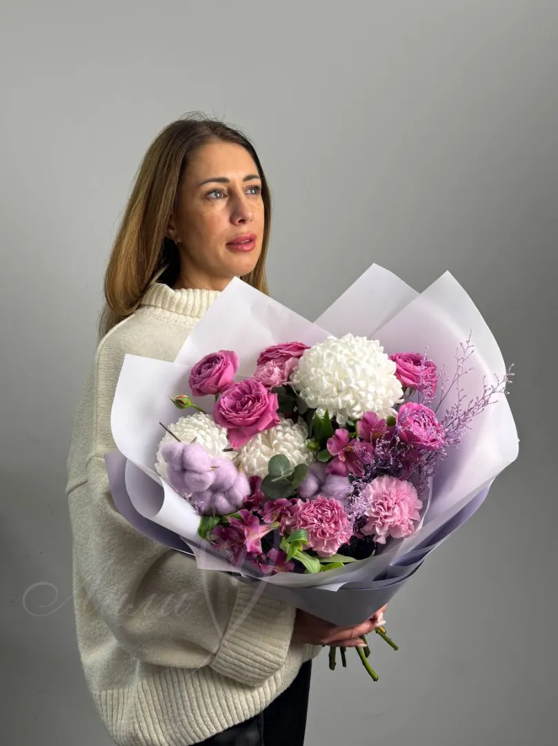 Этот букет станет прекрасным подарком для вашей возлюбленной, подруги или коллеги, и заполнит дом теплотой и уютом.