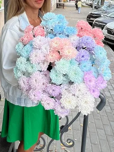 Нежный букет из хризантемы, поражающий своим великолепием. Каждый его цветок уникален и завораживает.