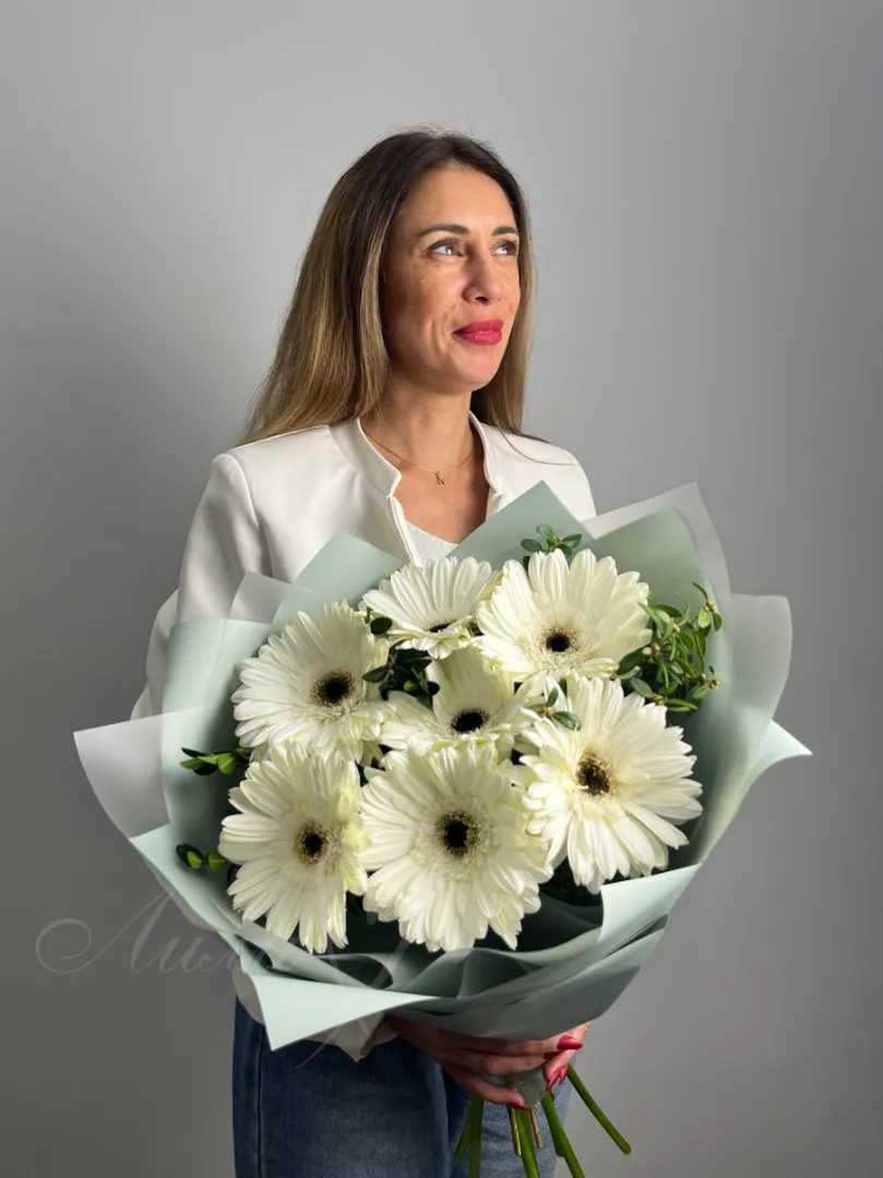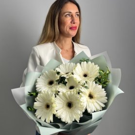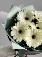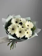 Этот нежный и изысканный букет состоит из 7 гербер и эвкалипта, упакованных в красивую корейскую бумагу. Он отлично подойдет в качестве подарка для любого торжественного случая или просто чтобы порадовать близкого человека своим вниманием и заботой. Каждый цветок в этом букете олицетворяет нежность, красоту и чувственность, что делает его идеальным выбором для тех, кто ценит простоту и изысканность.