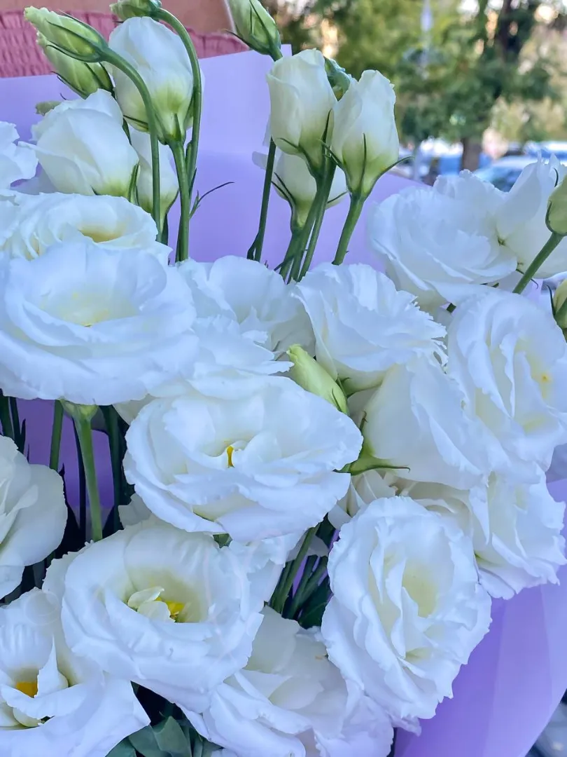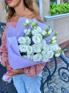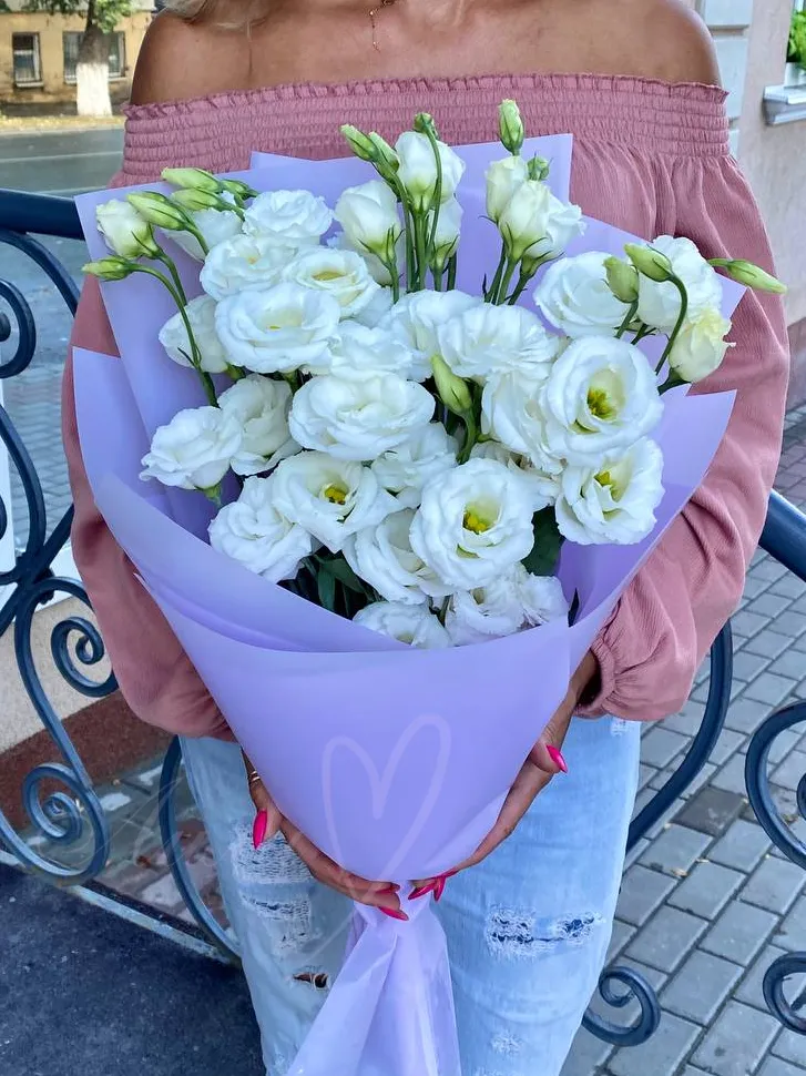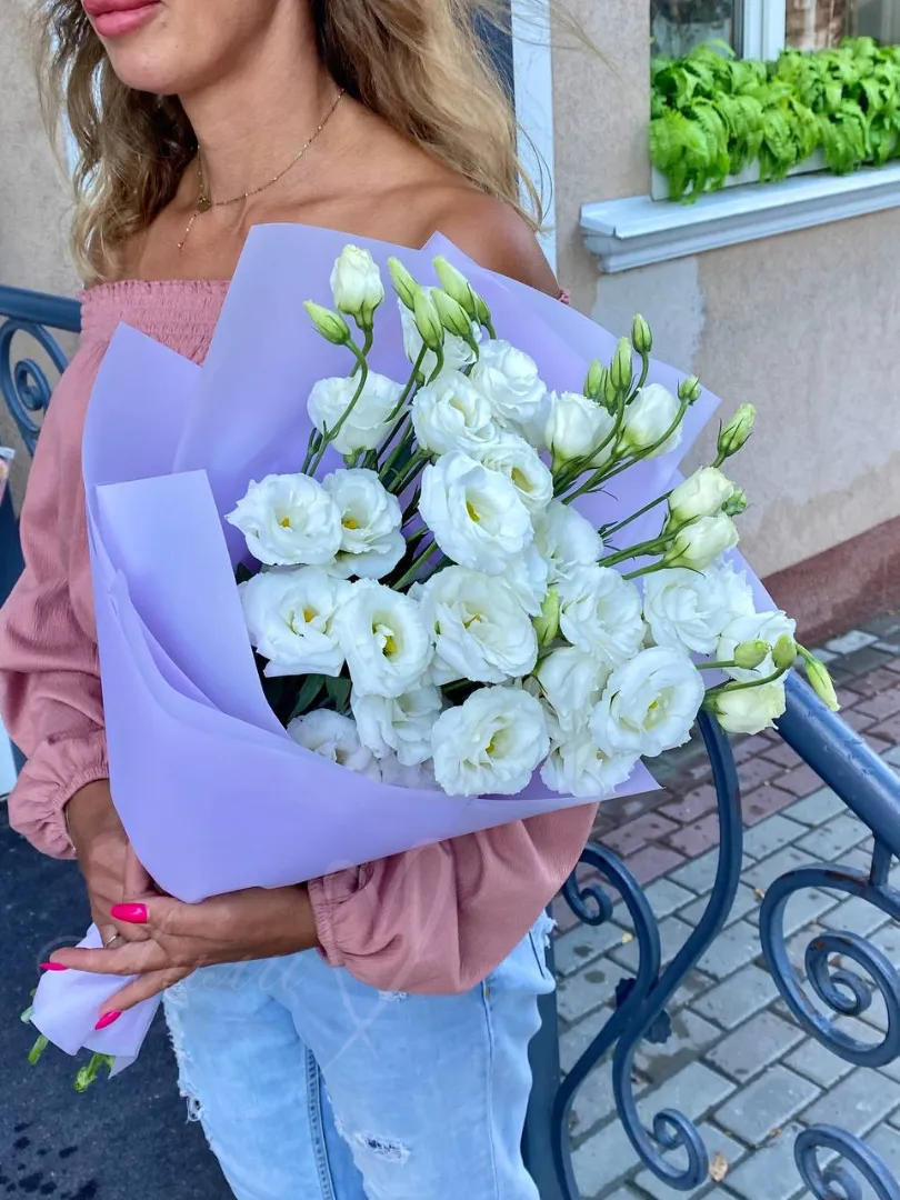 Нежный букет из Лизиантусов (Эустомы) в упаковке - это отличный подарок для тех, кто ценит красоту и изысканность. Эти изысканные цветы собраны в одну композицию, чтобы порадовать и восхитить своим видом. Этот букет станет прекрасным подарком для любого случая - от дня рождения до свадьбы.