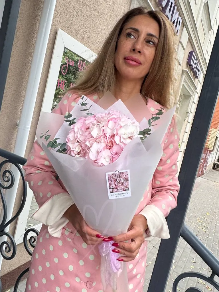 Букет с розовой гортензией,отличный подарок для любого повода.