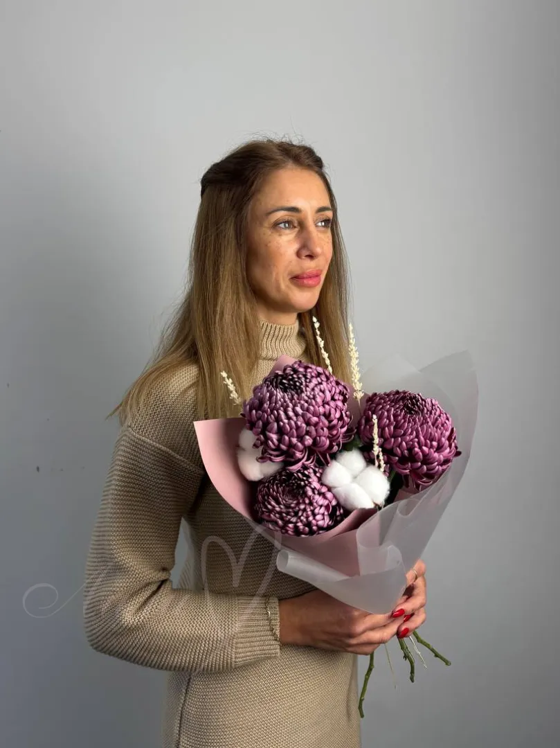 Букет из хризантем «Фиолетовая дымка»