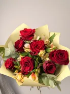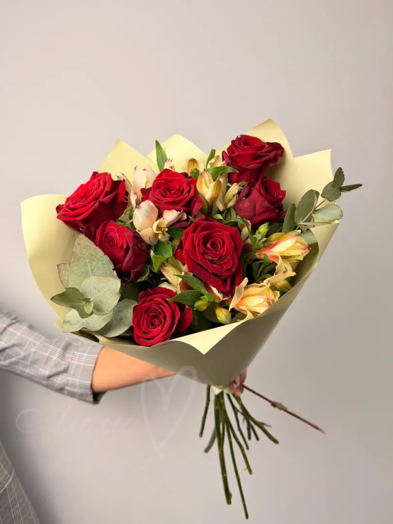Нежный и изящный букет «Розовая ириска» станет идеальным подарком для выражения ваших чувств. Сочетание трепетных роз и очаровательных альстромерий создает неповторимую гармонию. Добавьте к этому легкую зелень эвкалипта, и вы получите композицию, наполненную свежестью и очарованием. Этот букет идеально подойдет для особого случая или просто для того, чтобы подарить радость близкому человеку. Каждый цветок тщательно отобран, чтобы обеспечить высочайшее качество и эстетику. Красивая упаковка подчеркнет торжественность момента и сделает подарок еще более запоминающимся. «Розовая ириска» – это не просто букет, это воплощение нежности, элегантности и теплоты. Подарите своим любимым сладкие моменты счастья с этим чудесным цветочным ансамблем. Пусть этот букет расскажет о ваших самых искренних пожеланиях.