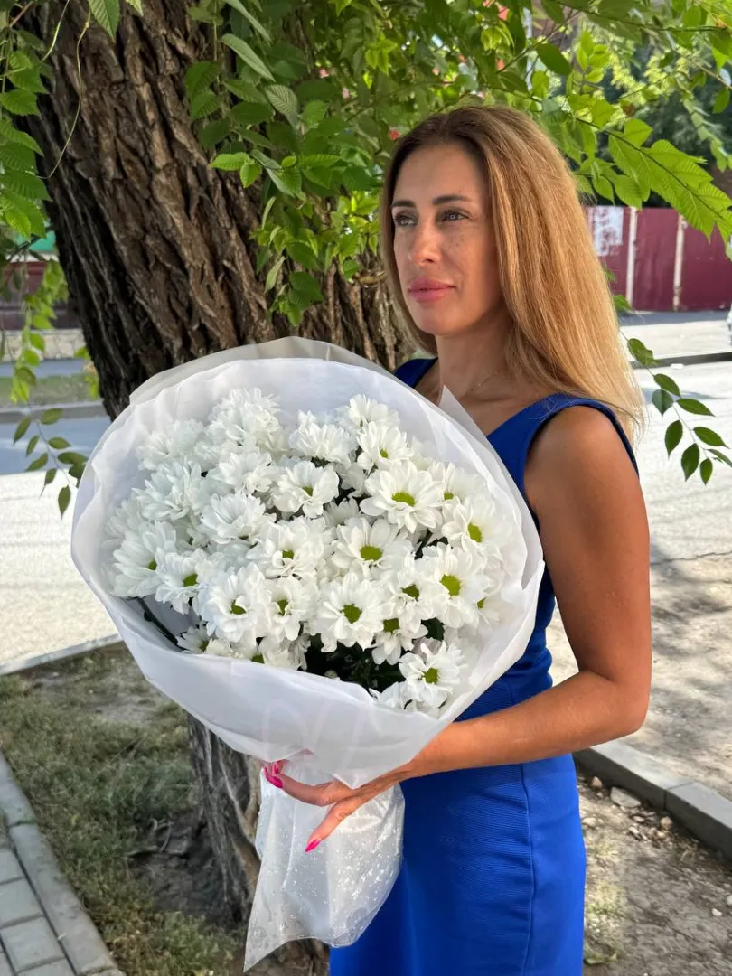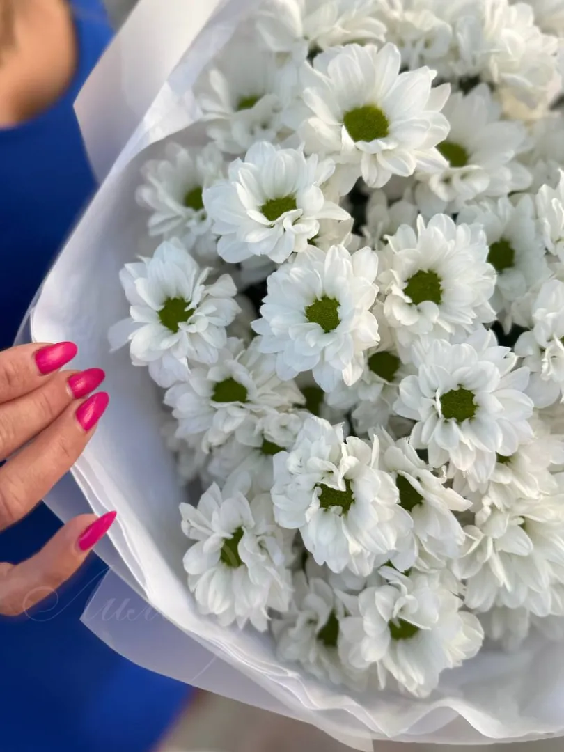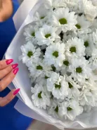 Нежный и элегантный букет из кустовых хризантем, упакованных в корейскую бумагу, станет прекрасным подарком для любого повода. Яркие цветы создадут атмосферу уюта и радости, подчеркнут заботу и внимание к получателю. Будет отличным выбором для тех, кто любит простоту и красоту в деталях.