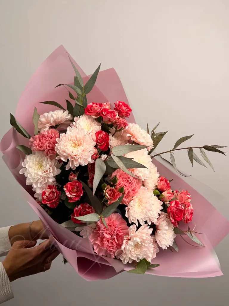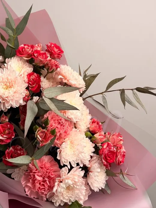 Все филиалыБукет из роз и хризантем «Клубничный шоколад»