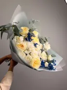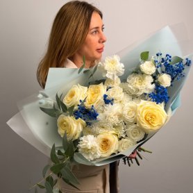 Нежный и элегантный букет, в котором сочетаются яркие и изящные розы, кустовые розы, великолепные гвоздики и хризантемы . Этот букет станет прекрасным подарком для любого повода и непременно порадует своего получателя. Упакованный в корейскую бумагу, он будет выглядеть еще более изысканно и привлекательно.