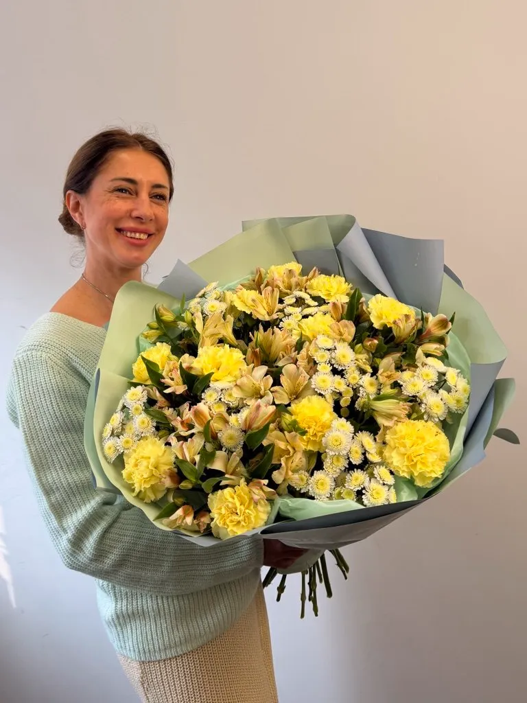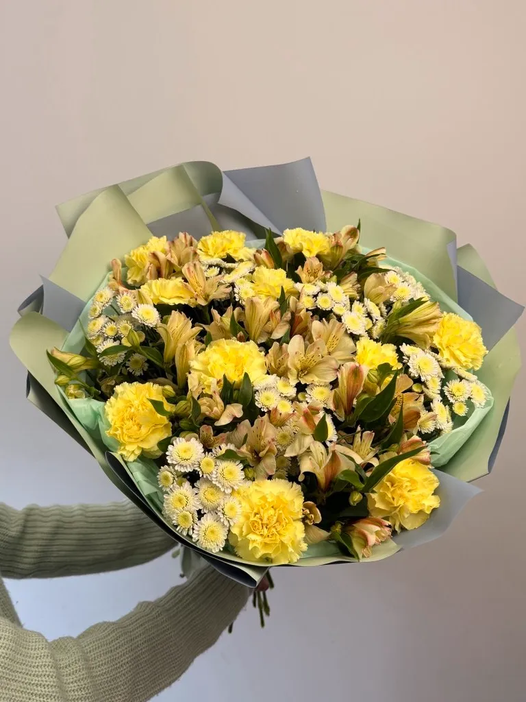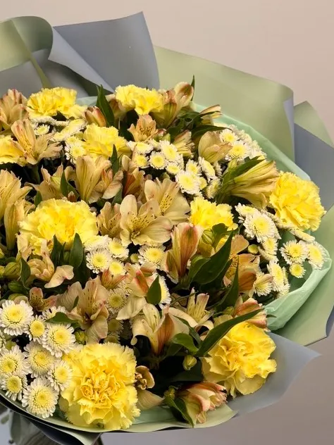 Все филиалыБукет из гвоздик, альстромерии и хризантемы «Романтичный вечер»