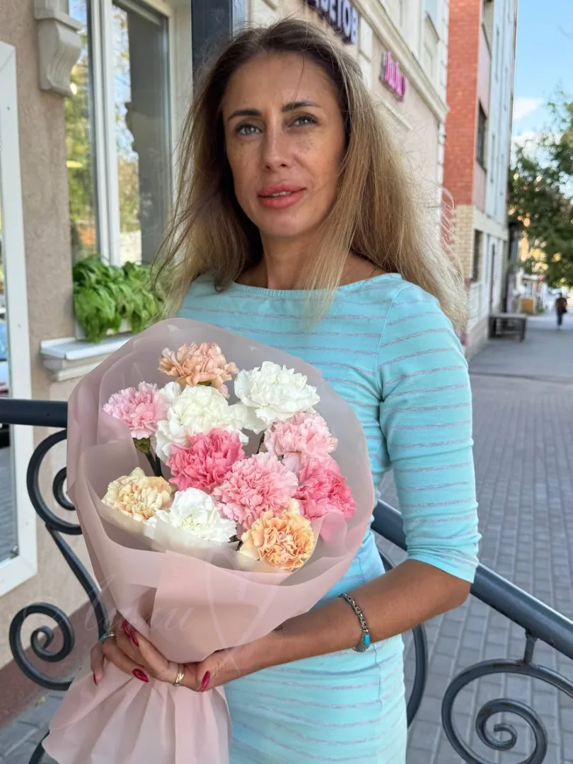 Монобукет букет из гвоздик поднимет настроение и несомненно подарит яркие эмоции на весь день!