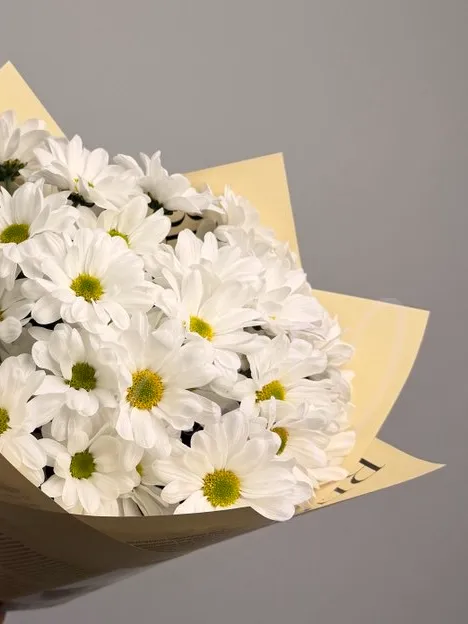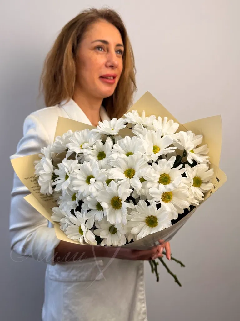 Букет «Белоснежный» из изящной кустовой хризантемы, создающей ощущение лёгкости и чистоты, станет идеальным украшением любого интерьера или приятным подарком для любого повода.