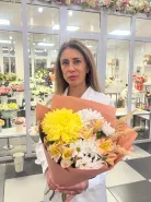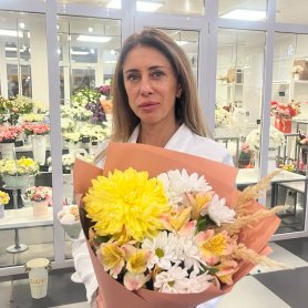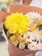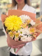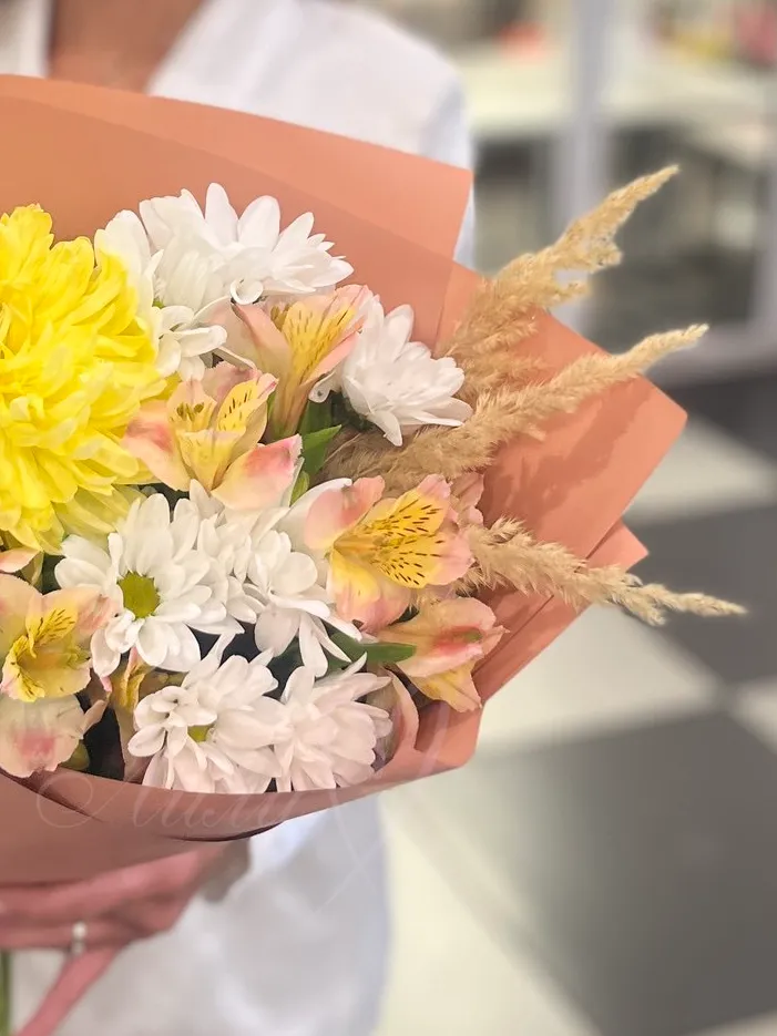 Сборный букет из хризантем, альстромерий и сухоцветов .