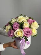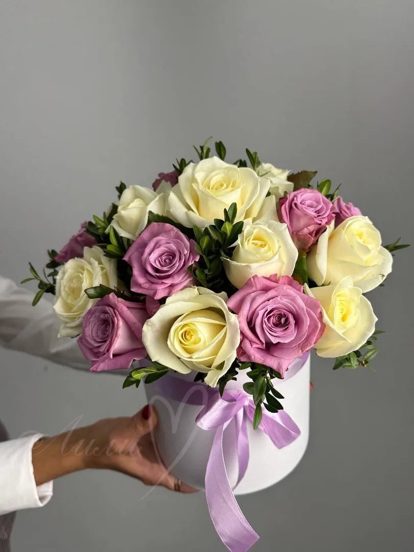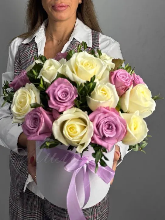Нежные розы в коробке,роза Сорт «Меритим» замена на сорт «Аква» розовая