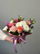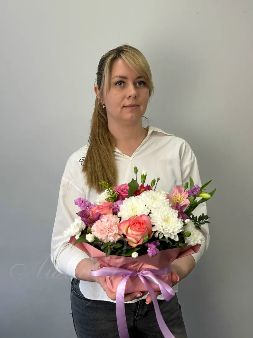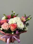 Композиция «Снежана» – это воплощение очарования и нежности, собранное из лучших цветов. Нежные розы в сочетании с элегантными гвоздиками и яркой альстромерией создают гармоничный образ. Кустовые хризантемы придают композиции легкость и воздушность. Зелень, словно иней, дополняет общую картину, подчеркивая чистоту и свежесть. Эта композиция станет идеальным подарком, способным растопить любое сердце. Подарите себе или близким частичку сказки с «Снежаной».