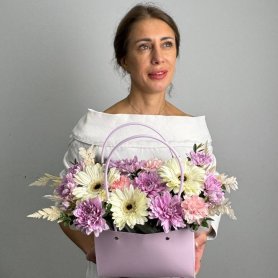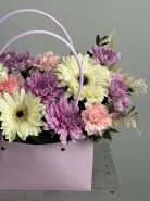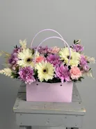 Яркая композиция из кустовой хризантемы и герберы.