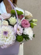 Сборная композиция из георгина,хризантем и эустом.