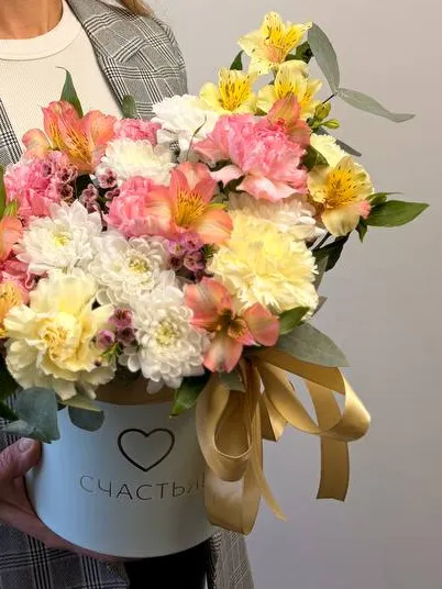 Порадуйте близких изысканной композицией «Стефи», сочетающей хризантему, альстромерию и гвоздику. Этот изящный букет в стильной коробке станет отличным подарком для любого повода. Каждая композиция тщательно собрана из свежих и качественных цветов, создавая ощущение праздника и уюта. Дарите настроение и тепло с нашей цветочной коллекцией!