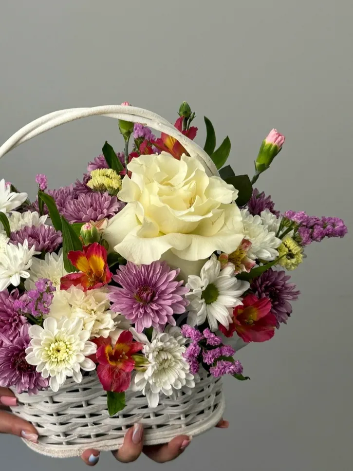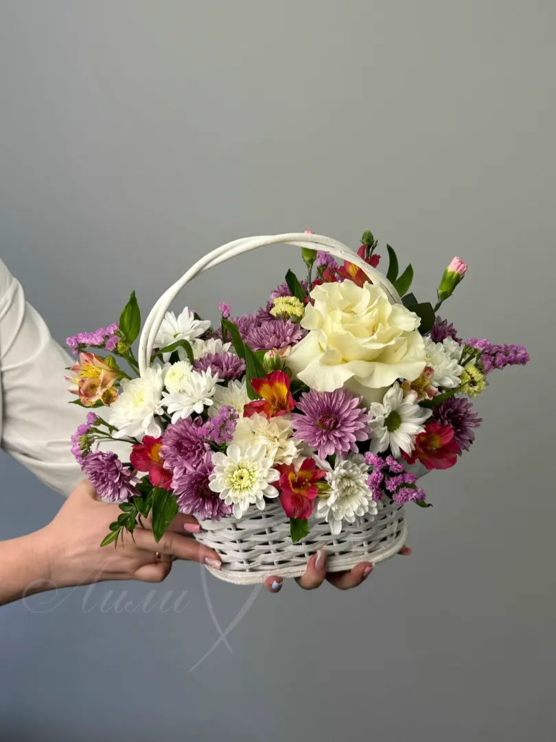 Подарите воплощение нежности и очарования с букетом «Милена»! Эта сборная композиция, искусно составленная из ароматной французской розы, изящной альстромерии и пышной кустовой хризантемы, заставит сердце биться чаще. Добавление статицы и кустовой гвоздики придает букету воздушность и объем, а сухоцветы создают неповторимую текстуру и изысканный стиль. Все эти чудесные цветы бережно расположены в стильной корзине на флористической губке, что гарантирует их свежесть и первозданный вид. «Милена» – это идеальный выбор для выражения самых искренних чувств, будь то признание в любви, поздравление с праздником или просто желание порадовать дорогого человека. Этот букет станет настоящим украшением любого интерьера и надолго сохранит свое очарование. Добавьте ярких красок и утонченности в жизнь с букетом «Милена»!