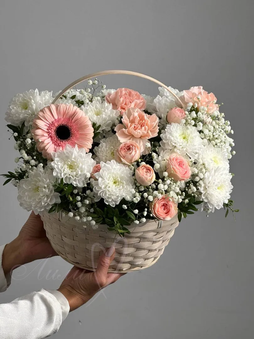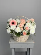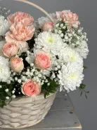 Композиция «Момент нежности» — это изящный букет, объединяющий в себе разнообразие текстур и ароматов. В его составе гармонично сосуществуют яркие гвоздики и роскошные кустовые розы, создающие эффектную и романтичную атмосферу. Эта композиция станет идеальным подарком для тех, кто ценит нежность и утонченность в каждом моменте.