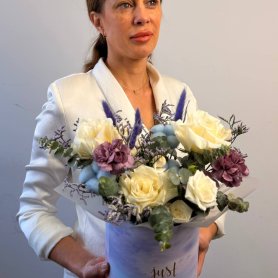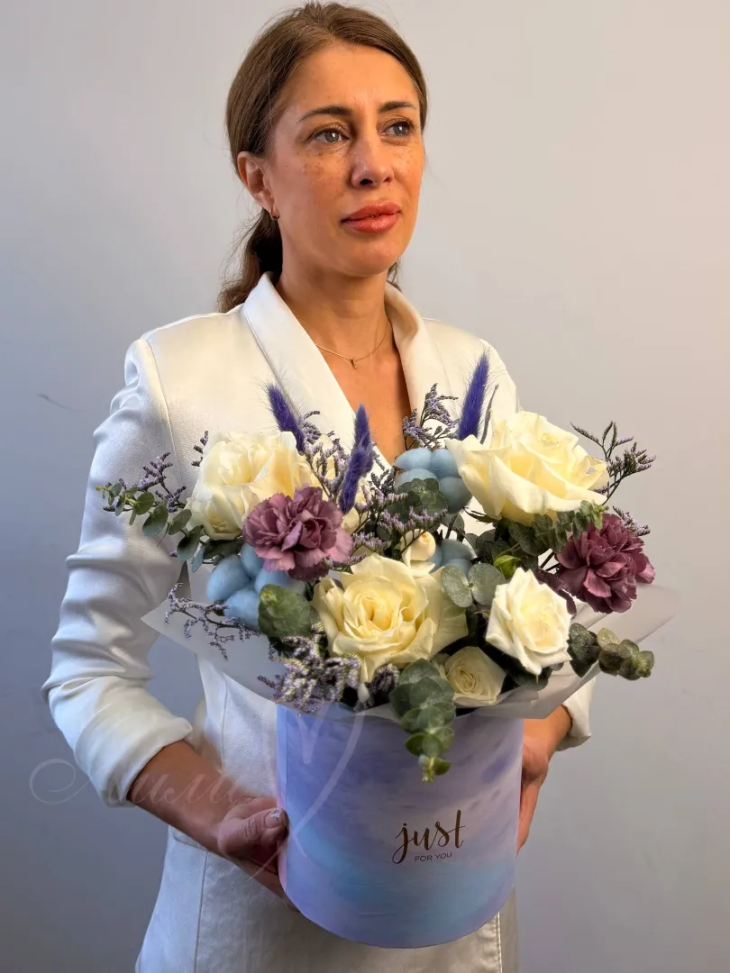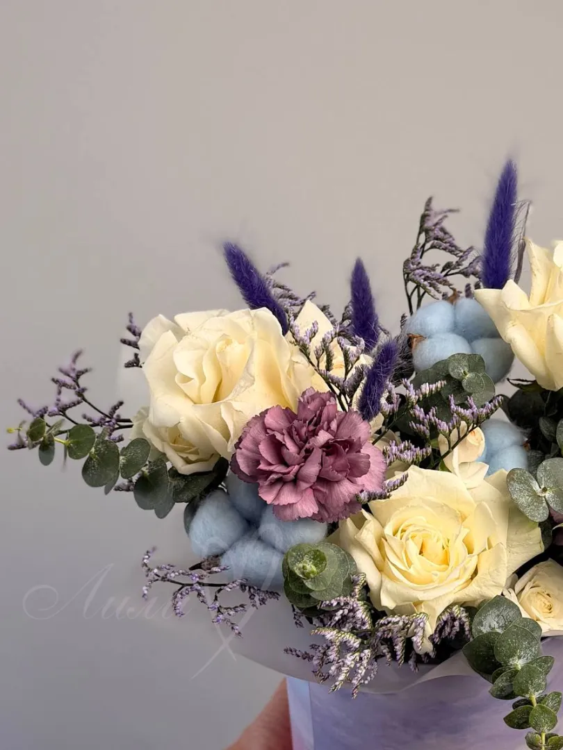 Композиция «Лазурь» — изысканное сочетание нежных роз и насыщенных гвоздик, создающее атмосферу спокойствия и красоты. Этот букет идеально подойдет для любого повода, подчеркивая искренние чувства и внимание. Композиция «Лазурь» создает ощущение гармонии и утонченности, радующих глаз и сердце.