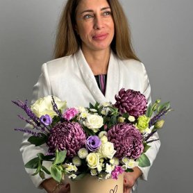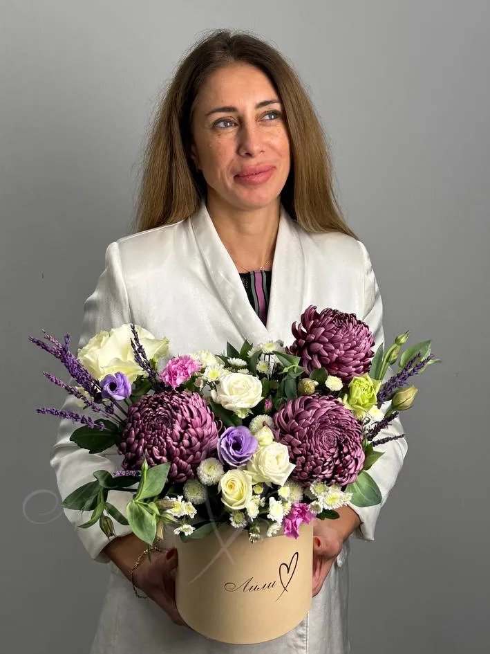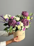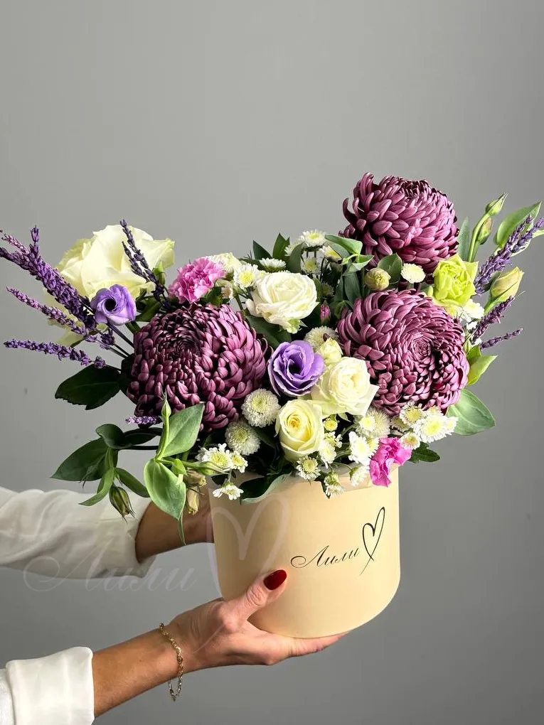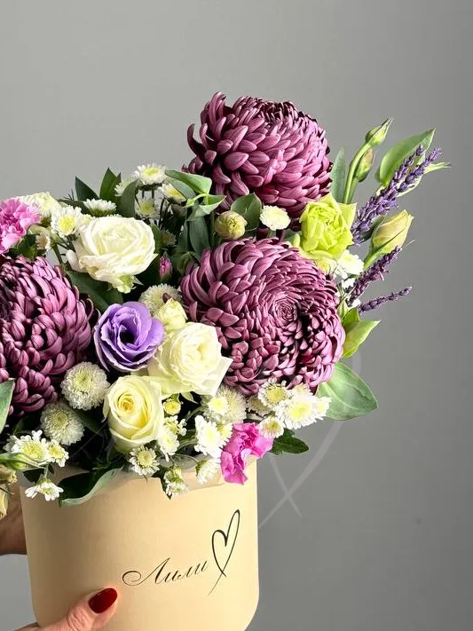 Композиция «Великолепие» — это изысканное сочетание ярких и нежных цветов, создающее ощущение гармонии и романтики. В её составе присутствуют хризантемы, розы, эустома, гвоздики, лаванда в красивой корзине. Эта композиция идеально подойдёт для особых случаев, чтобы выразить любовь, благодарность или поздравить близкого человека.