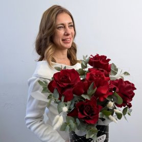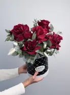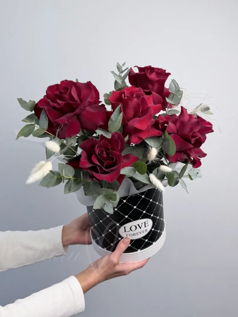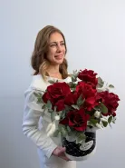 Композиция из роз «Малина» — изысканный букет в шляпной коробке, идеально подходящий для особых случаев. В его составе нежные пионовидные розы, ароматный пиафлор и элегантный эвкалипт, создающие гармонию и свежесть. Этот букет станет прекрасным подарком и украшением любого интерьера.