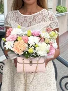 Композиция с эустомой и гвоздикой.