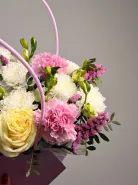 Сборная композиция из кустовой хризантемы,розы, альстромерии.