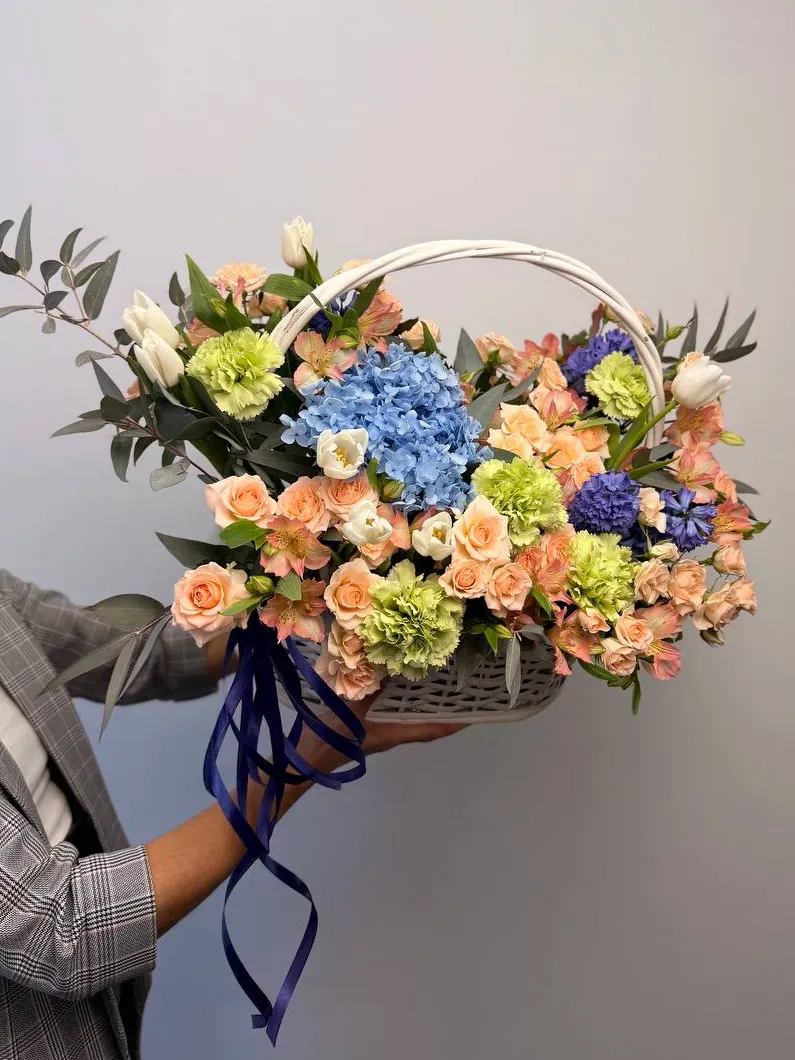 Композиция «Престиж» — это изысканный букет, в котором гармонично сочетаются стабилизированная гортензия, роза кустовая и тюльпан, создавая элегантную и насыщенную палитру. В добавление к основным цветам, в композицию входят гвоздики, альстромерия и эвкалипт, придающие букету текстурность и свежесть. Каждая деталь тщательно подобрана, чтобы подчеркнуть статусность и утонченность подарка. Богатство оттенков и разнообразие форм делают композицию визуально привлекательной и запоминающейся. Такой букет идеально подойдет для торжественных мероприятий, подарков или особых случаев. «Престиж» подарит радость и подчеркнет важность любого праздника.