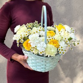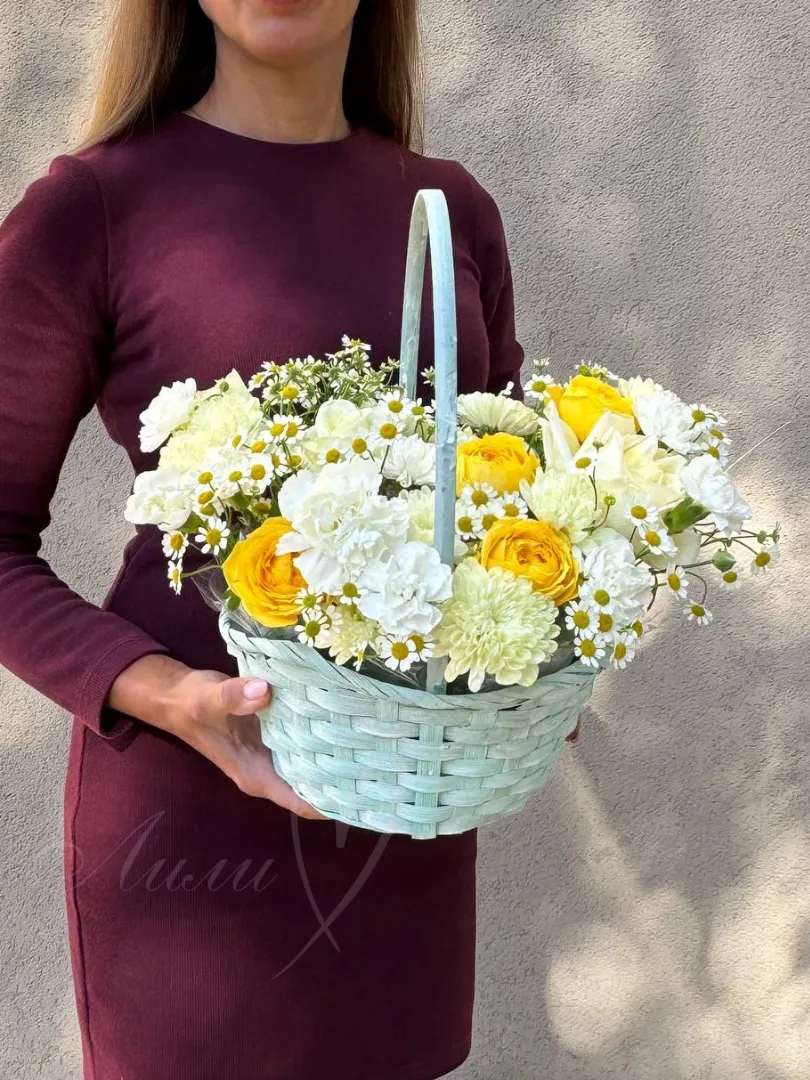Корзина всегда актуальный подарок,цветовое решение с нотками осени.
