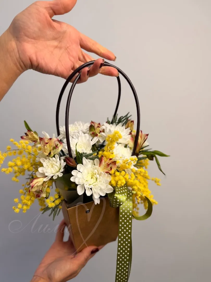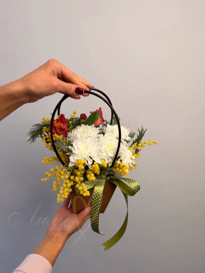 Подарите себе ощущение весеннего настроения с букетом «Весна», созданным из ярких и ароматных цветов. В его составе элегантные веточки мимозы, которые наполнят ваш дом теплом и солнечным настроением. В гармонии с мимозой располагаются изящные альстромерии, добавляющие легкости и утонченности композиции. Пышные хризантемы кустовой формы подчеркнут многогранность сезона, даря ощущение радости и свежести. Всё это великолепие собрано в стильной корзине, которая станет достойным украшением интерьера. В составе букета также присутствует пиафлор, создающий дополнительные акценты и придающий композиции завершенность. Эта яркая и живописная комбинация подойдет как для праздничных мероприятий, так и для теплого домашнего уюта. Букет «Весна» станет отличным подарком для близких и друзей, передавая искренние чувства и тёплое настроение. Каждая деталь тщательно подобрана, чтобы создать гармонию и радость при первом взгляде. Закажите этот очаровательный букет и ощутите настоящую весеннюю энергию у себя дома!