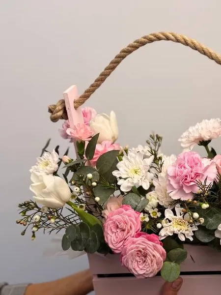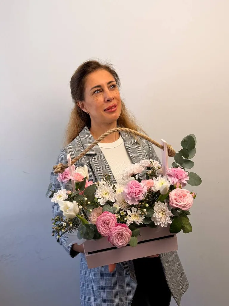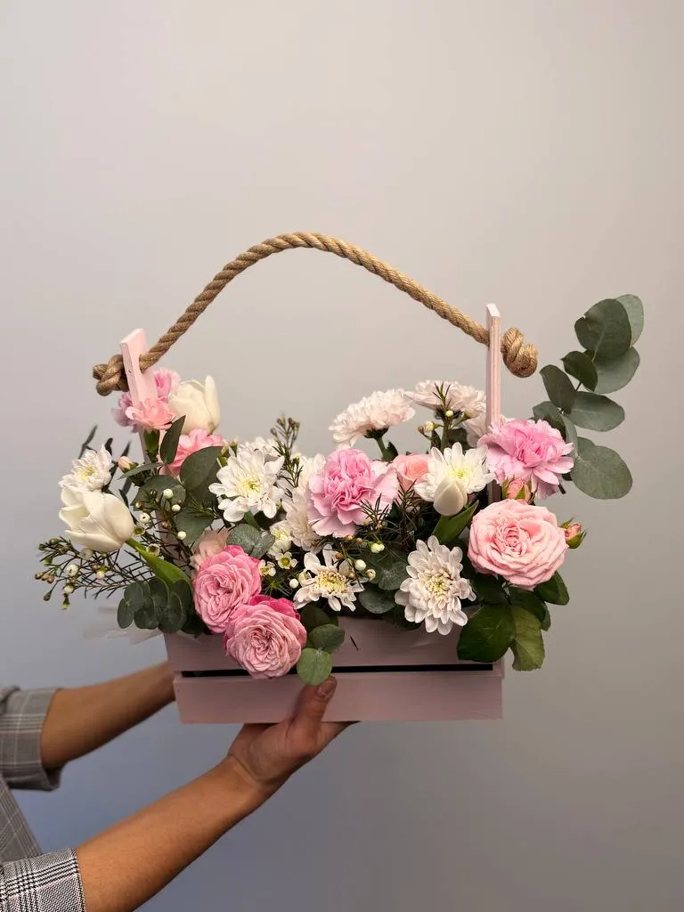 Композиция «Светлость» — это изысканный букет из нежных тюльпанов, пышных кустовых роз, хризантем, гвоздик и добавления свежего эвкалипта. Эти яркие и в то же время утонченные цветы создают атмосферу легкости и радости. Букет оформлен в стильный короб, что придает ему завершенность и удобства. Акцент на светлых оттенках подчеркивает его название и делает композицию особенно праздничной. Такой букет станет прекрасным подарком для выражения теплых чувств и добрых пожеланий.