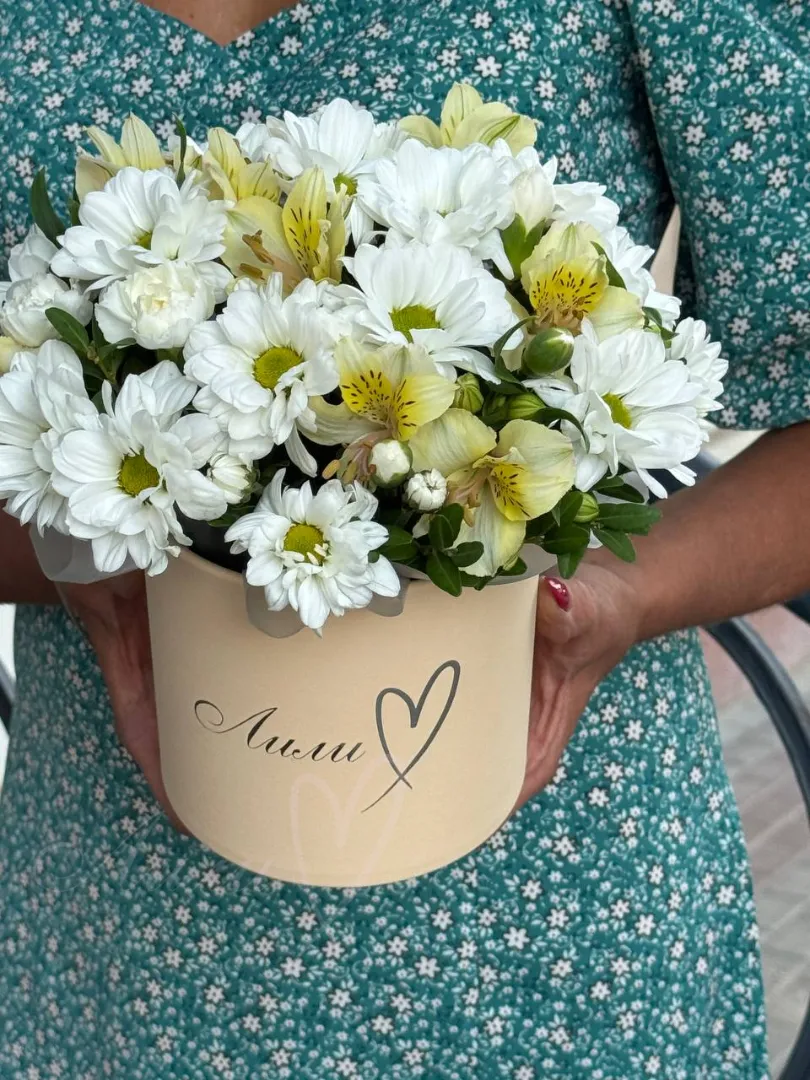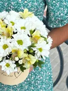 Яркая композиция из самых ароматных кустовых роз, альстромерии и гвоздики.