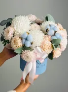 Воздушная композиция из хризантем и кустовой розы – идеальный способ выразить свои самые искренние чувства и пожелания.
