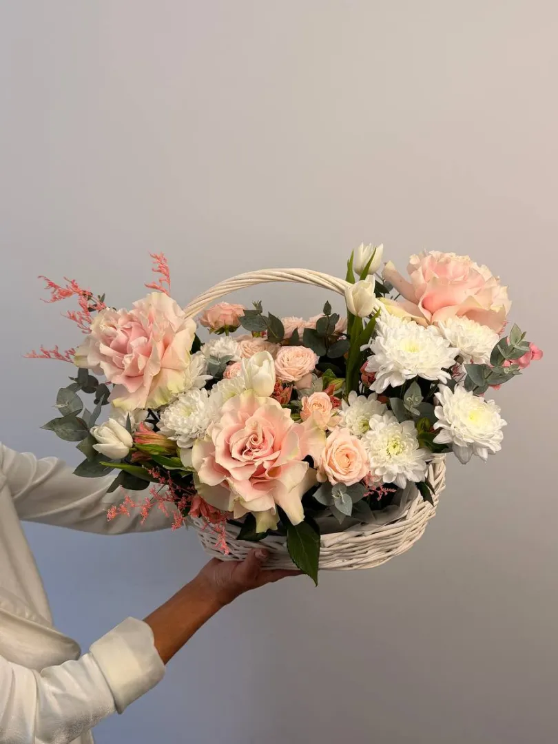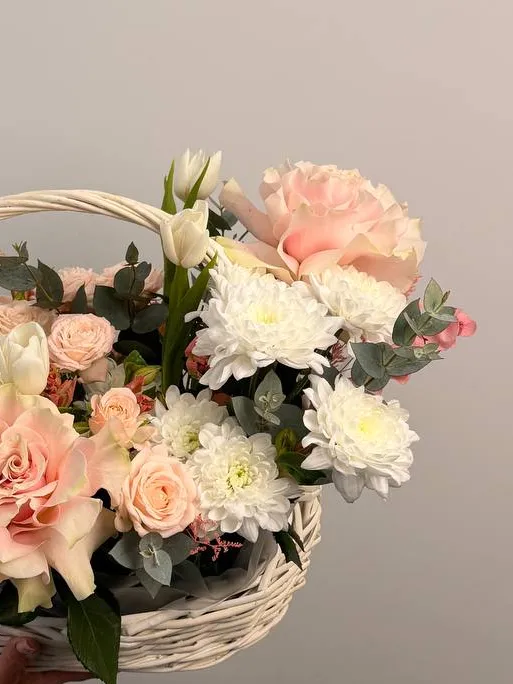 Подарите особенный момент с композицией «Конфета», созданной в утончённой корзине. В её составе изысканные розы, тюльпаны и хризантемы, которые подчеркнут вашу заботу и тепло. Кустовые розы добавляют объем и насыщенность, а альстромерия и эвкалипт придают композиции свежесть и легкую ароматическую нотку. Композиция «Конфета» — это деликатное поздравление, способное порадовать и удивить. Закажите сейчас и подарите радость своим близким и коллегам!