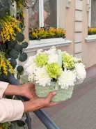 «Сочный лайм» - это яркая и освежающая композиция, которая подарит заряд бодрости и хорошего настроения. В основе букета – пышные гвоздики, чьи оттенки перекликаются с зеленью сочных цитрусов. Нежные кустовые хризантемы добавляют объем и текстуру, создавая ощущение легкой воздушности. Этот букет - настоящее воплощение весеннего пробуждения и летней свежести.