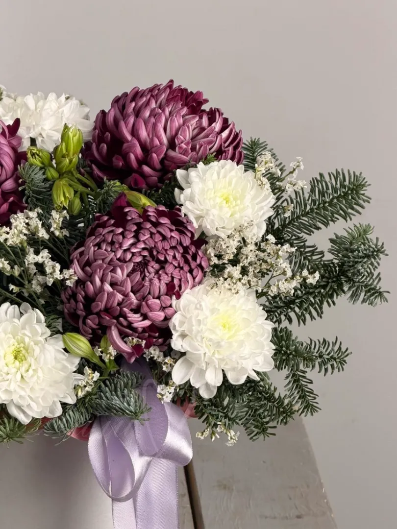 Красиво оформленный в шляпной коробке, этот букет станет прекрасным подарком для особого человека в вашей жизни.
