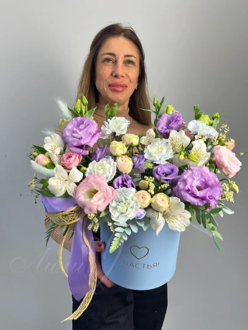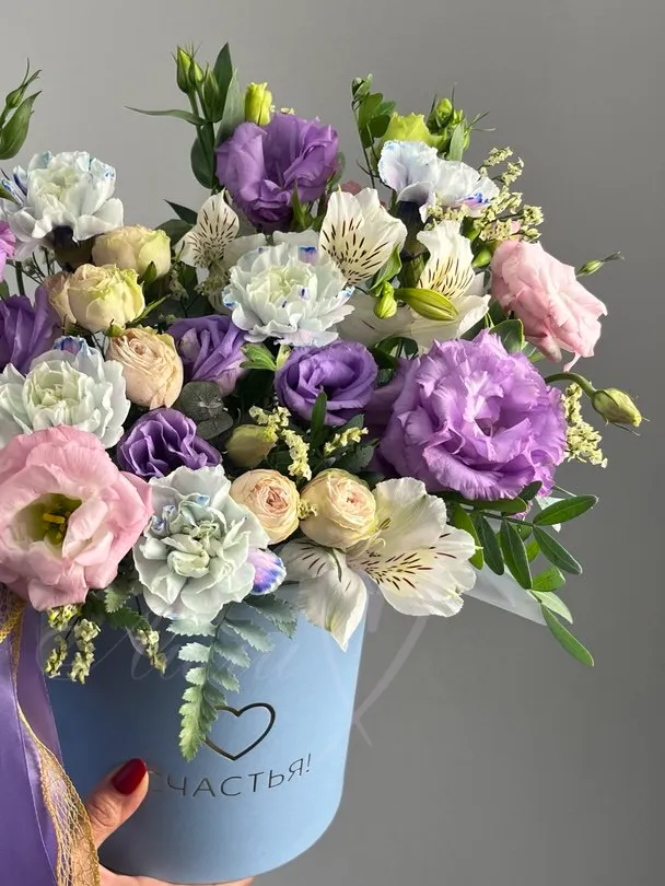 Композиция, украшенная изящными яркими цветами, словно история о любви и счастье, расскажет о ваших чувствах без слов.