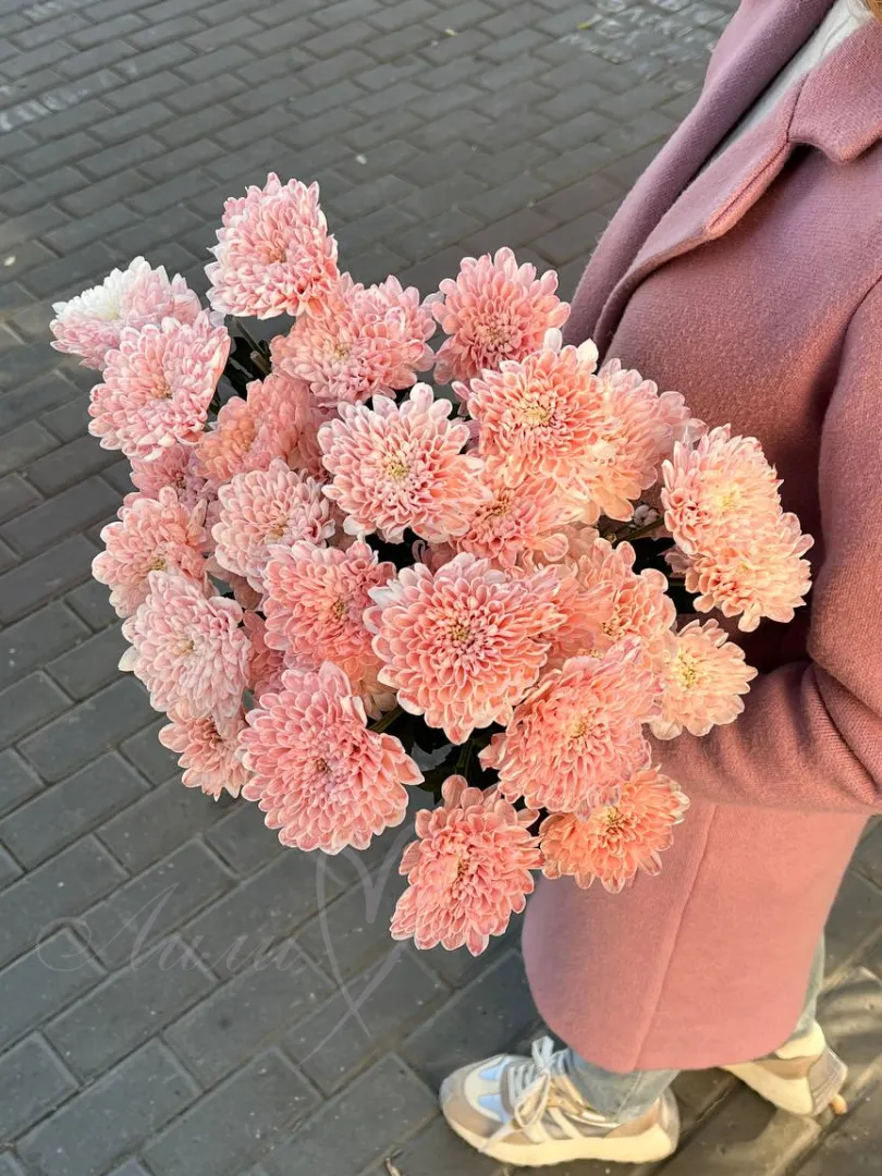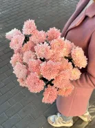 Хризантема кустовая крашенная,необычного лососего цвета.