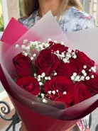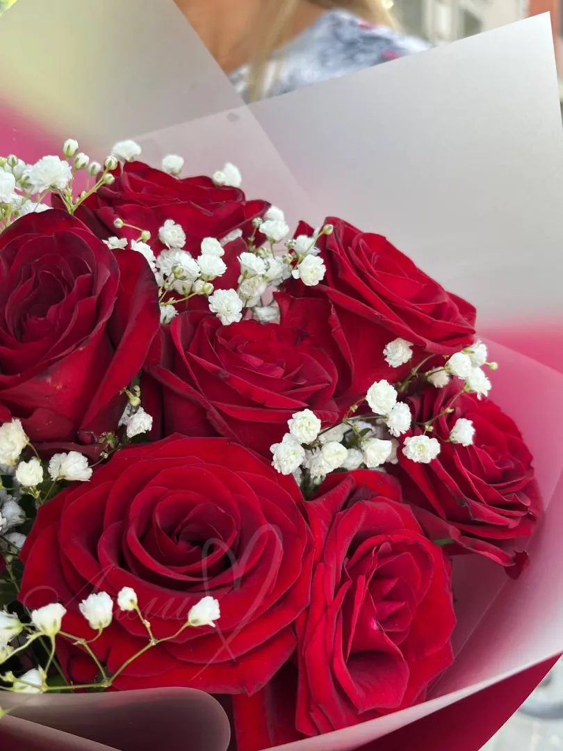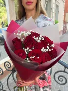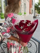 Бордовые розы в дополнении с гипсофилой лучше расскажут о ваших чувствах, чем вы сами.