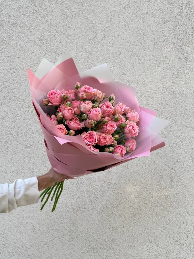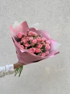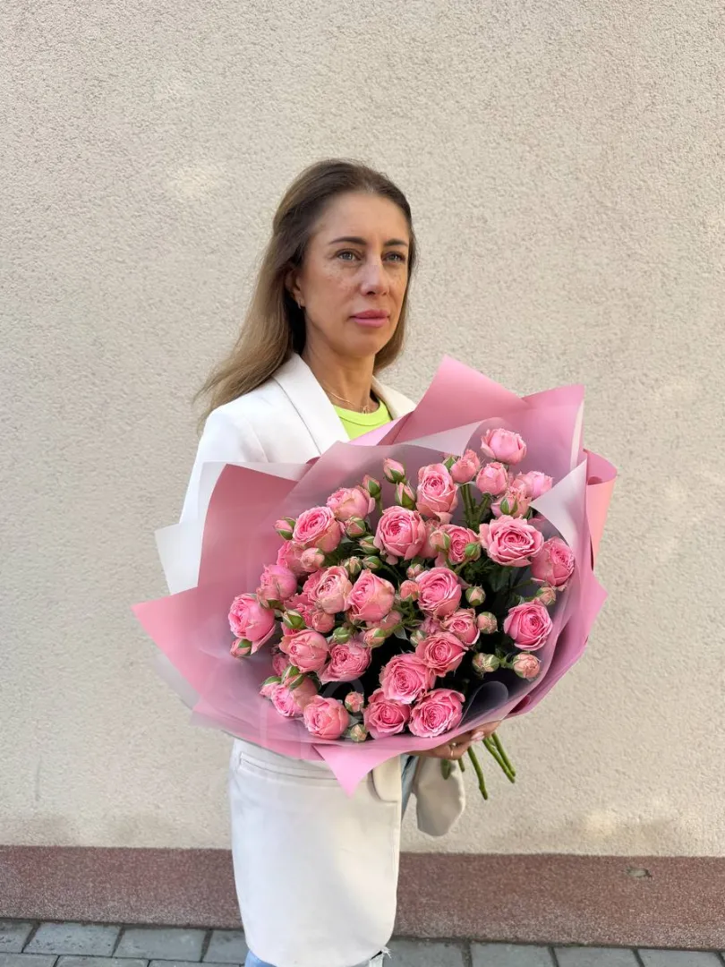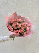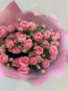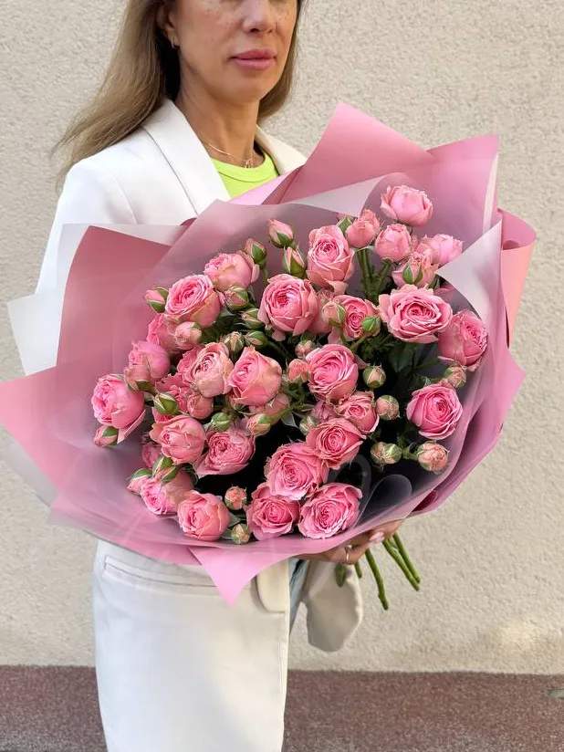 Нежный букет в розовых тонах с пышными цветами восхитит и порадует любую девушку.