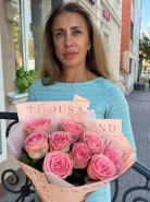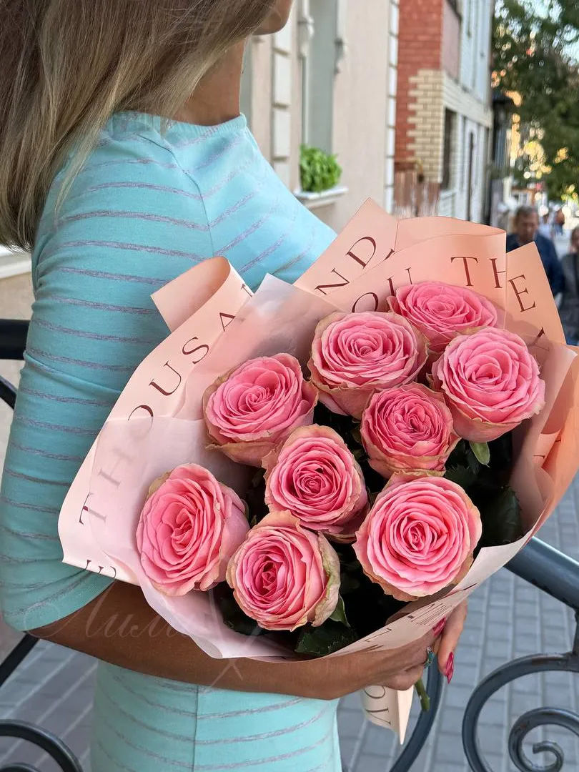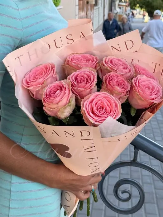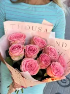 Этот утонченный букет состоит из шикарных пионовидных роз, которые символизируют любовь и нежность. Каждый цветок олицетворяет уважение и восхищение, делая этот букет идеальным подарком для особых моментов в жизни. Благородная упаковка из корейской бумаги добавляет элегантности и завершённости этому прекрасному букету.